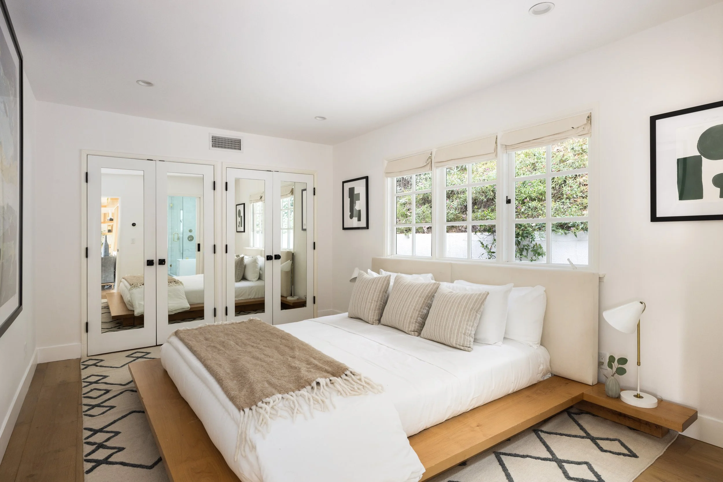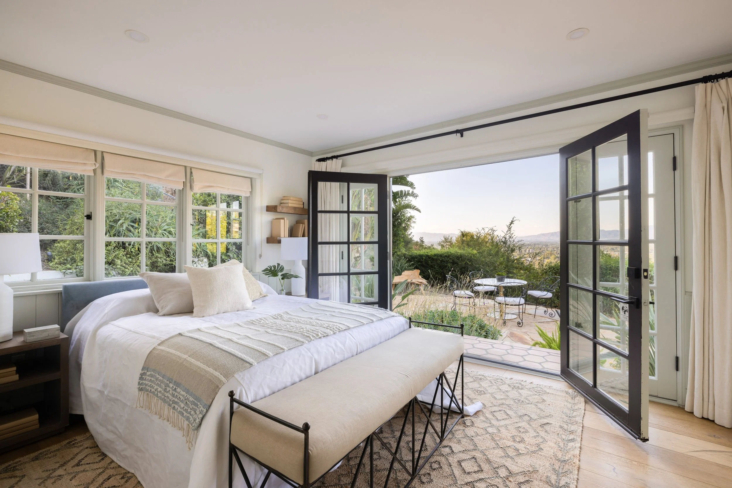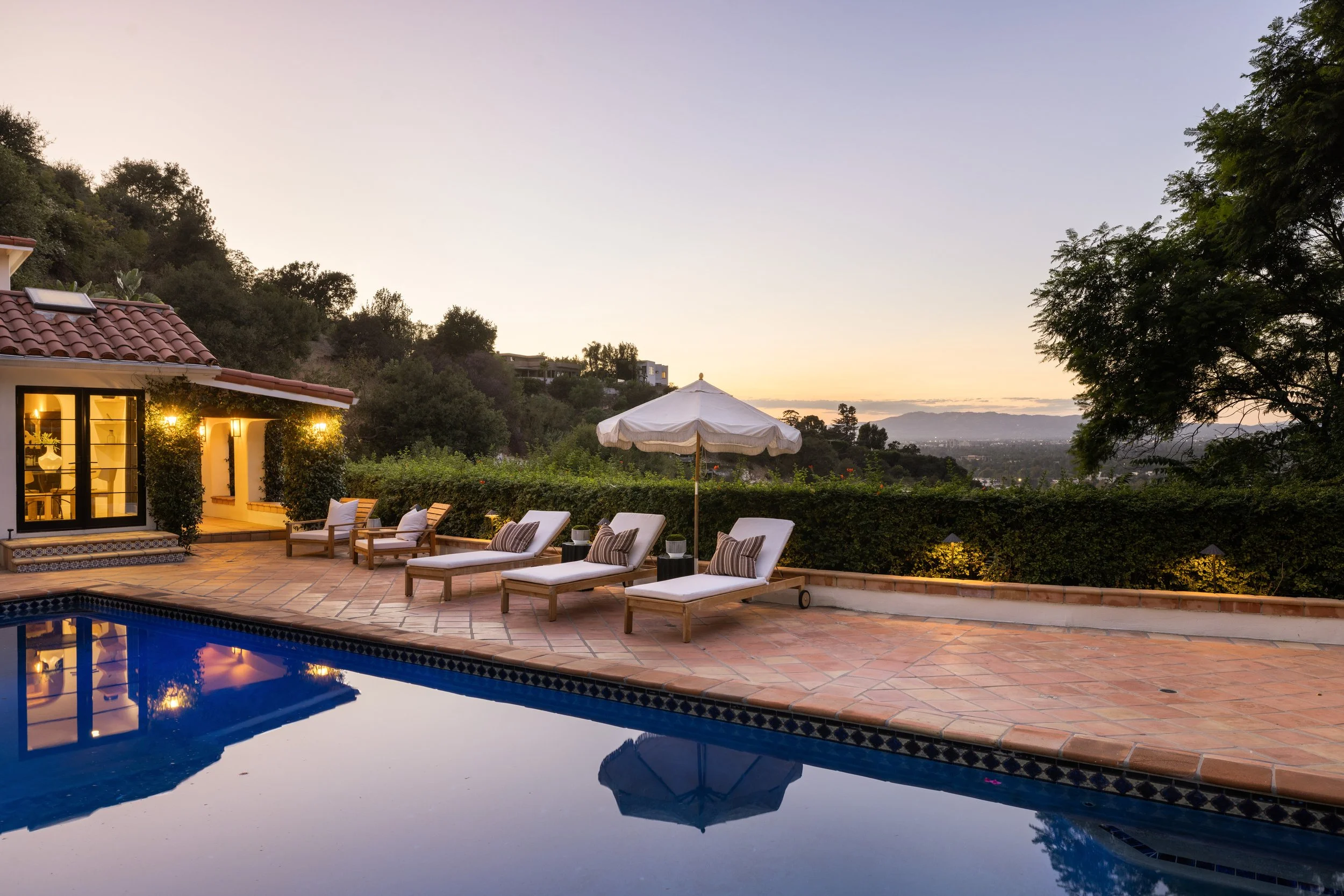 Enchanting hideaway or artist's retreat in the Studio City hills offers complete serenity and sweeping views. Enter through oversized gates and a hidden driveway for absolute privacy and seclusion. Mature hillside landscaping provides natural privacy, shielding the residence and garden from neighboring homes. The grounds feature a Saltillo tiled patio, saltwater pool and spa, outdoor kitchen, multiple seating areas, and fire pit. The 3-bedroom main residence offers a bright, open floor plan, illuminated by nine skylights, with a seamless flow between indoor and outdoor spaces. The living room features beamed ceilings, gas fireplace, French Oak wood floors (throughout), and panoramic views framed by a 20' steel bi-fold curtain wall. An updated kitchen with stainless steel appliances, marble countertops, glass-tiled backsplash, and adjacent breakfast area connects the dining room and outdoor entertaining areas. The ground level is complete with a den, laundry area, powder room, and two bedrooms each with en-suite baths. Upstairs, escape to a magical primary suite appointed with a cozy fireplace, walk-in closet, and full bathroom with dual vanity and a Victoria + Albert soaking tub. The converted garage offers additional air-conditioned living space, providing flexibility for use as a home office, gym, or creative studio. Enjoy additional upgrades like a state-of-the-art water filtration system, home security, raised vegetable garden, dog run with non-toxic AstroTurf, and privacy fencing around the property. Overlooking the esteemed Silver Triangle, the home is moments from some of the best shopping, dining, and entertainment below, yet offers a serene sanctuary you'll be drawn back to time and time again.